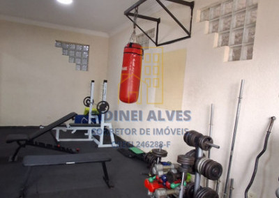 Condomínio com área de lazer, salão de festas, churrasqueira, quadra poliesportiva, playground, academia, portaria.