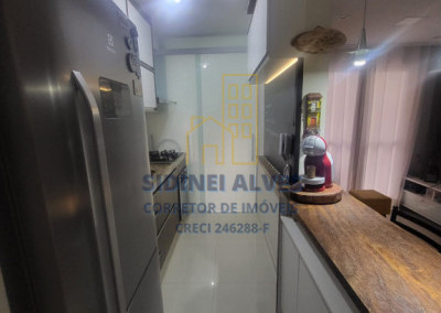 Dispõe de 2 dormitórios, sendo 1 suíte, todos com armários planejados, garantindo organização e otimização dos ambientes. A sala de estar é bem iluminada e integrada à sacada, criando um espaço agradável para relaxar ou receber visitas. A cozinha conta com móveis planejados e integração à lavanderia, trazendo praticidade ao dia a dia.